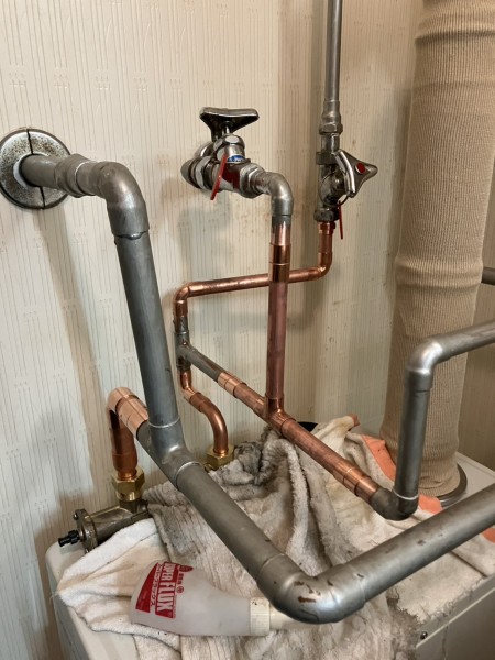 既存の給湯器から新しい給湯器に交換するにあたり、給気ホースの接続位置が変わっており水側の既存管が邪魔をして設置できないことが判明。